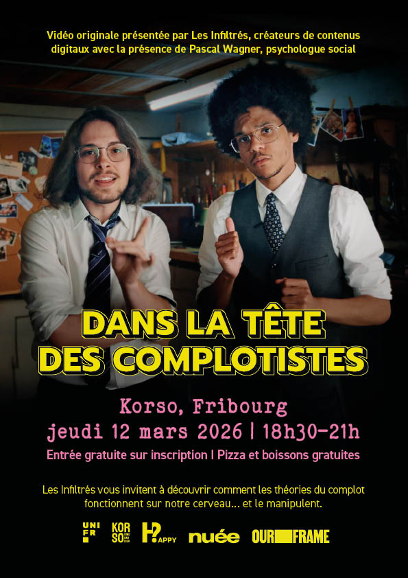 Auf dem Programm steht eine Filmvorführung, gefolgt von einem Gespräch mit Les Infiltrés und dem Sozialpsychologen Pascal Wagner-Egger, um ohne Tabu über Verschwörungstheorien, ihre Verbreitungsmechanismen und Instrumente zur besseren Erkennung von Desinformation und zur Stärkung des kritischen Geistes zu diskutieren.